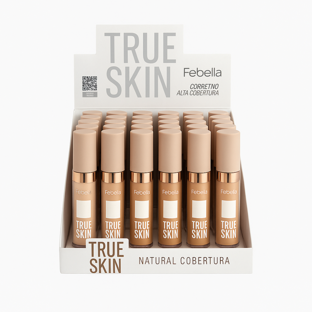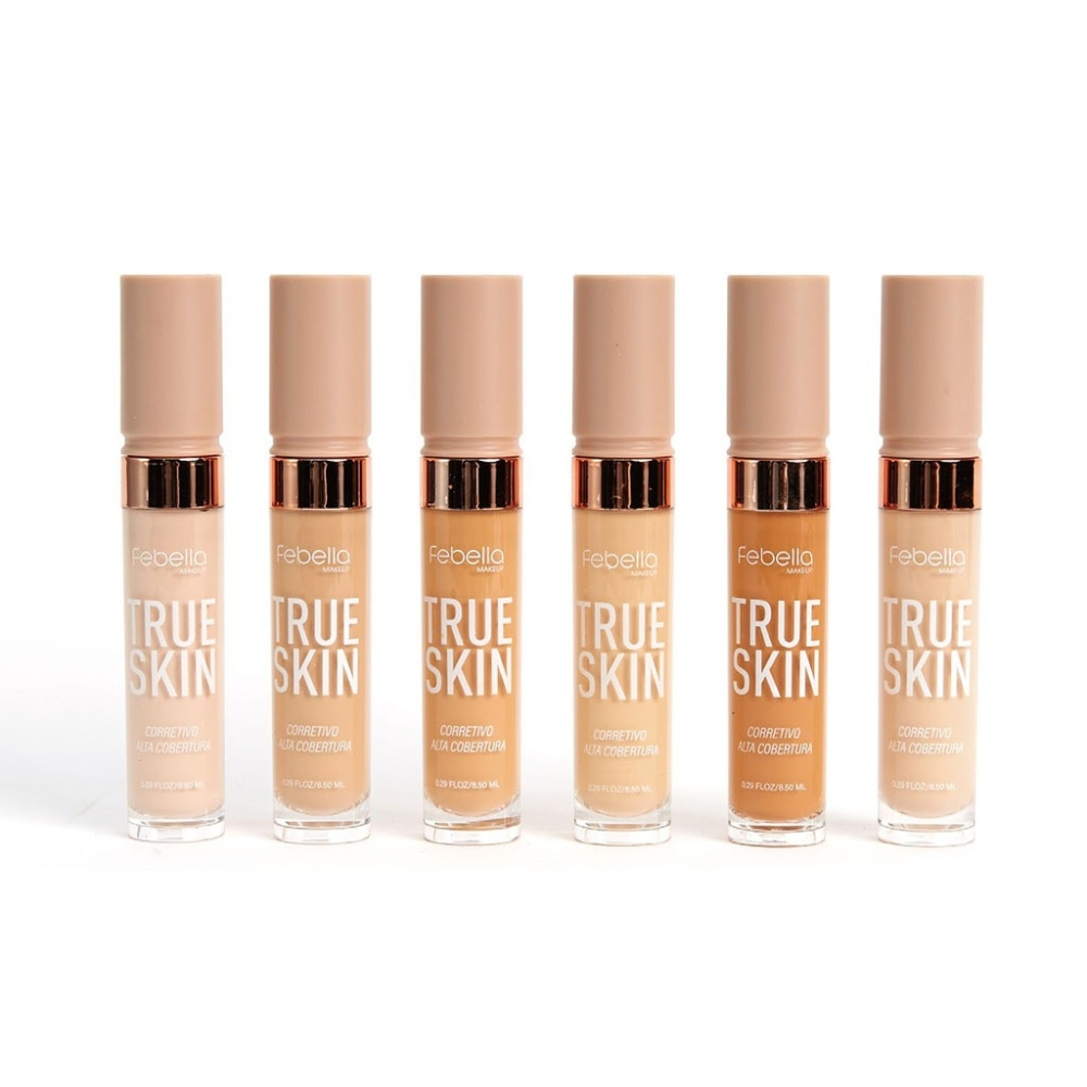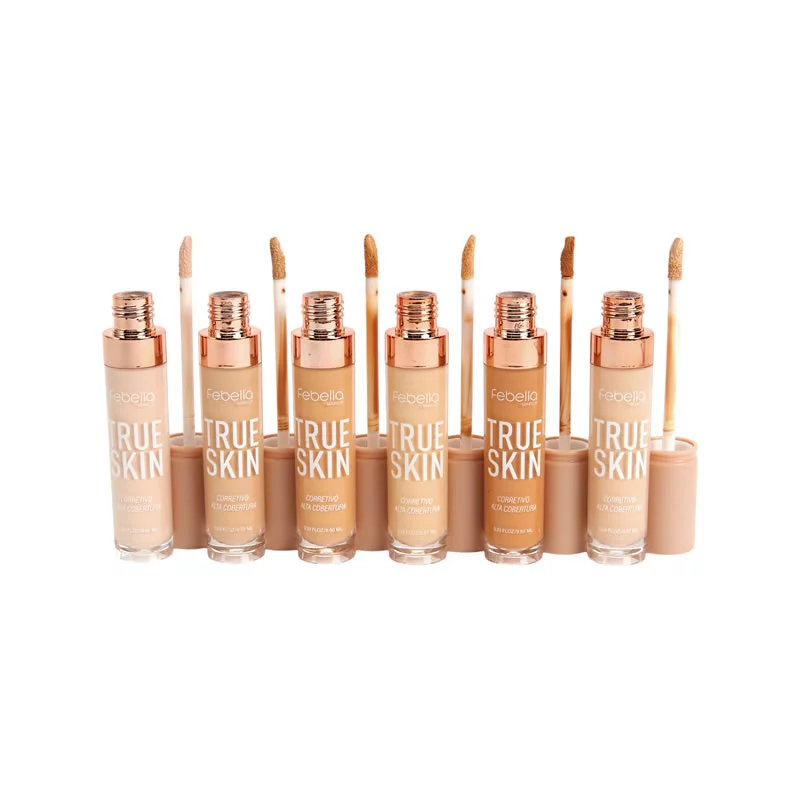 O Corretivo Alta Cobertura True Skin da Febella é um produto de maquiagem formulado para oferecer uma cobertura impecável, disfarçando imperfeições, olheiras e manchas, enquanto mantém um aspecto natural e leve na pele. Sua fórmula é enriquecida com ingredientes que proporcionam hidratação e cuidado para a área dos olhos, evitando o ressecamento e o acúmulo de produto nas linhas finas.